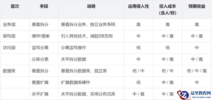 最为彻底的优化手段,在业务层就做了拆分,投入较高,但取得效果往往也比较可观。
