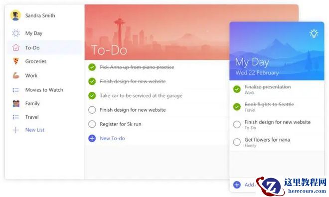 微软出品的 To Do清单工具,集成了备忘录+清单+提醒日历等功能丰富的小软件;可用于手机、平板电脑和电脑的多客户端云。