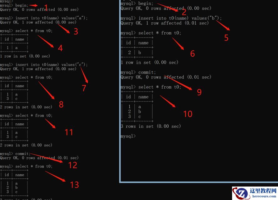 通过上图我们可以看到,当我们在事务A中进行自增列的插入操作时,另外会话事务B也进行插入操作,这种情况下会发生2个奇怪的现象: