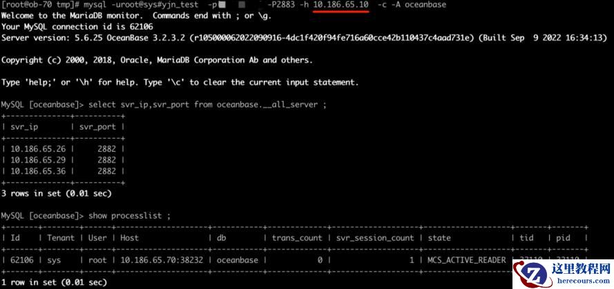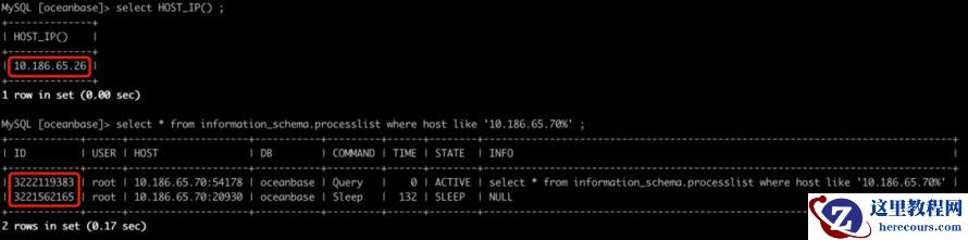 也可以通过直连后侧的observer,通过oceanbase.__all_virtual_processlist表获取连接ID;