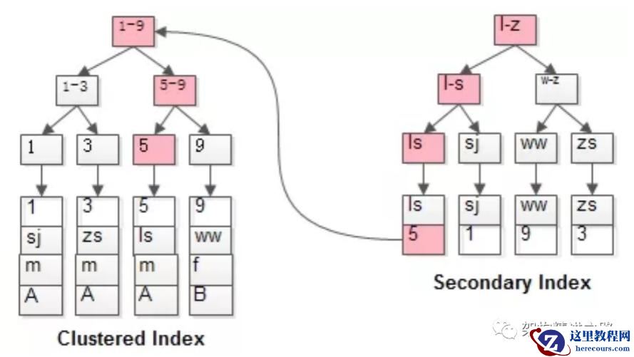 name 是普通索引(二级索引),非聚簇索引,其叶子节点存储的是聚簇索引的的值