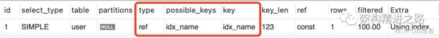 explain select id, name from user where name = 'lisi';