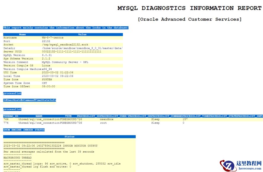 ü MYSQL 常用信息,例如: errorlog , slowlog , generalog , status,processlists,innodb status,variables 等; ü 可调用 diagnostics() 生成 HTML 报告; ü 数据库日志可以按时间范围进行收集; ü OS 常用信息, /var/log/messages ,操作系统基础信息等 |