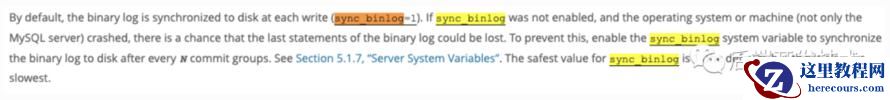 根据 sync_binlog 参数描述,如果设置为大于一,就代表N次事务才会将log持久化到磁盘中。而与此同时,redo log 的 innodb_flush_log_at_trx_commit 参数设置为1,表示每次事务提交都会执行 fsync。