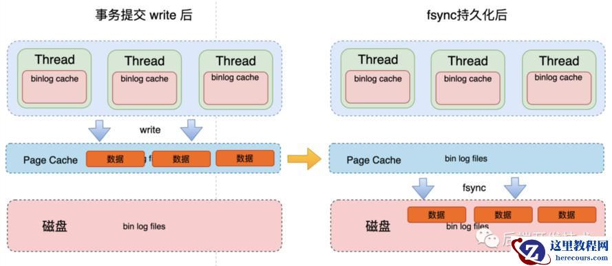 fsync:然后操作系统执行 fsync 时 bin log 才会从 page cache 中真正持久化到磁盘。(占用磁盘IOPS)