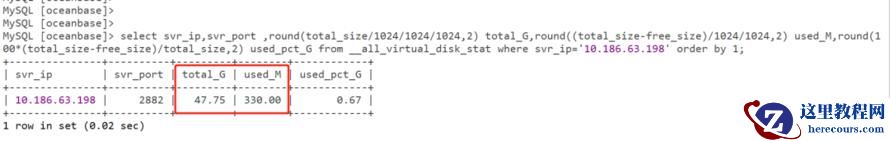 330M 代表当前 observer 已使用磁盘空间大小47.8G 代表当前 observer 磁盘空间总大小验证: