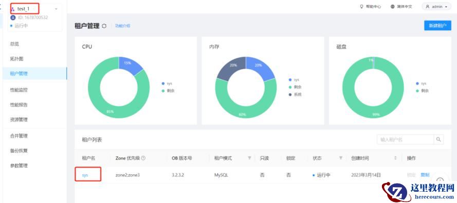 OceanBase 集群界面会展示 Observer 的资源水位,今天简单了解一下资源水位的数值代表的含义以及关联参数现有 test_1 集群,只有一个sys租户
