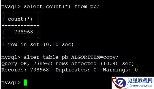 但是马上意识到这个操作本身就是强制拷贝表。数据量小看似没有问题。但是实际问题太大了。模拟创建一个稍微有点数据量的表,如图3,还是执行这个ALGORITHM=copy