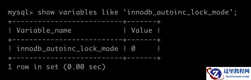 接下来,我把 innodb_autoinc_lock_mode 取值改为 1,如下: