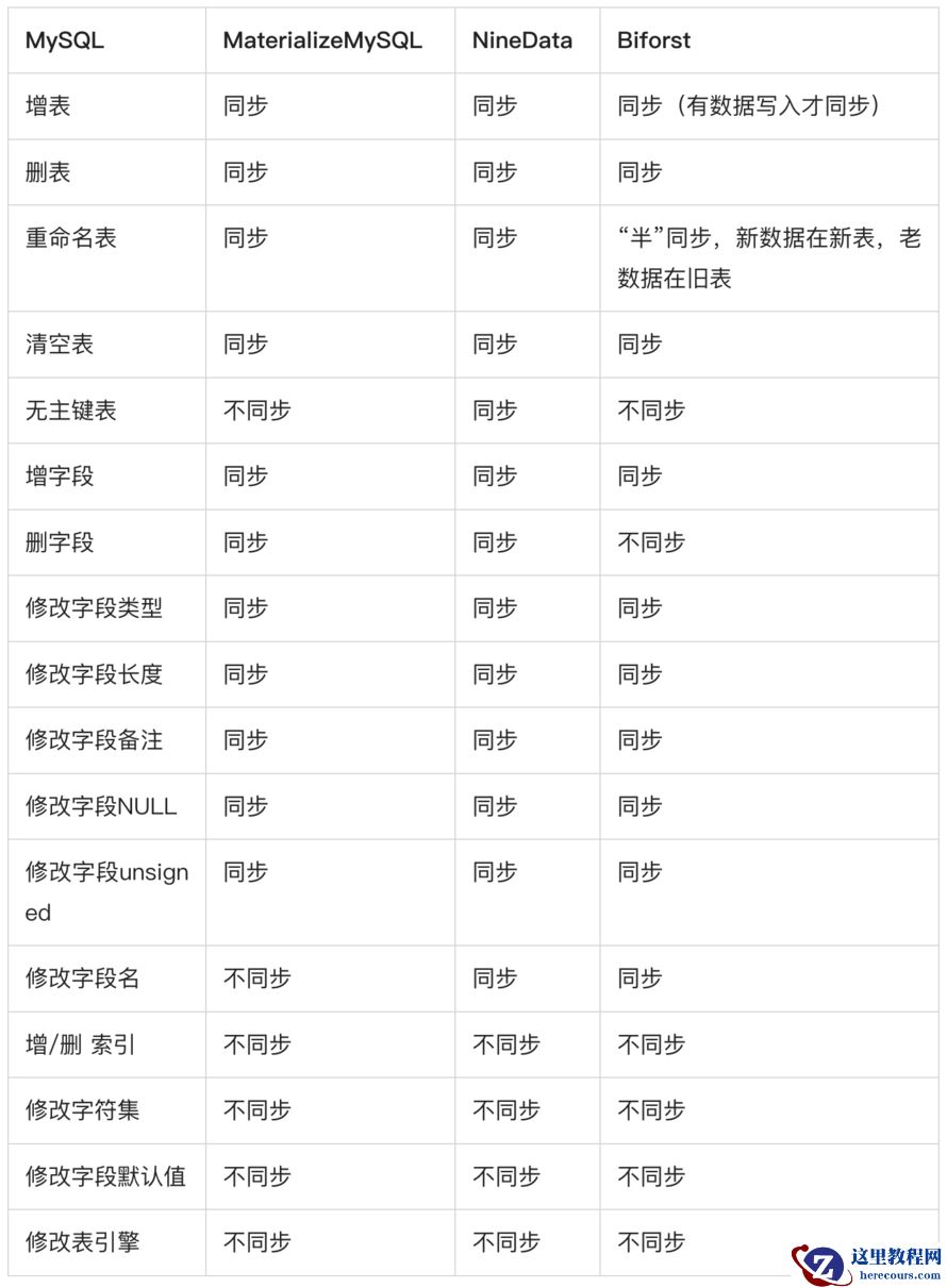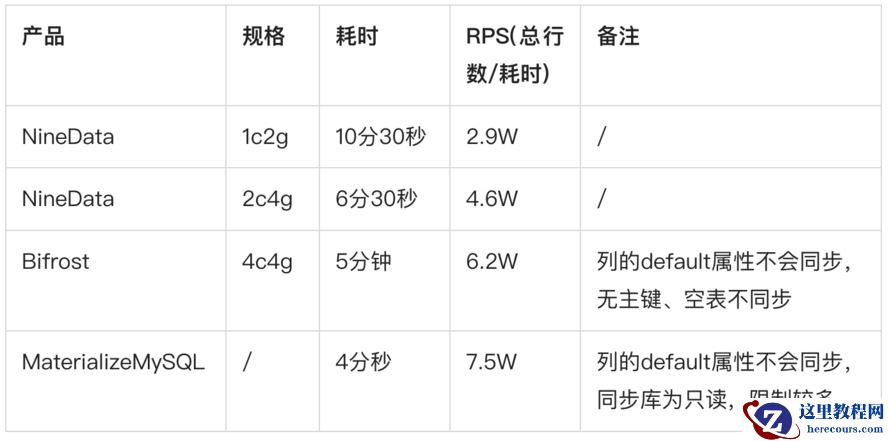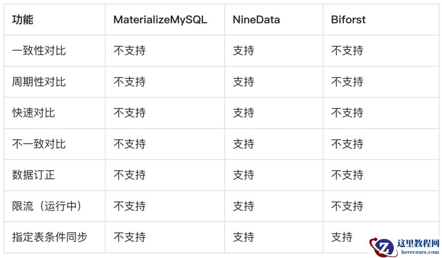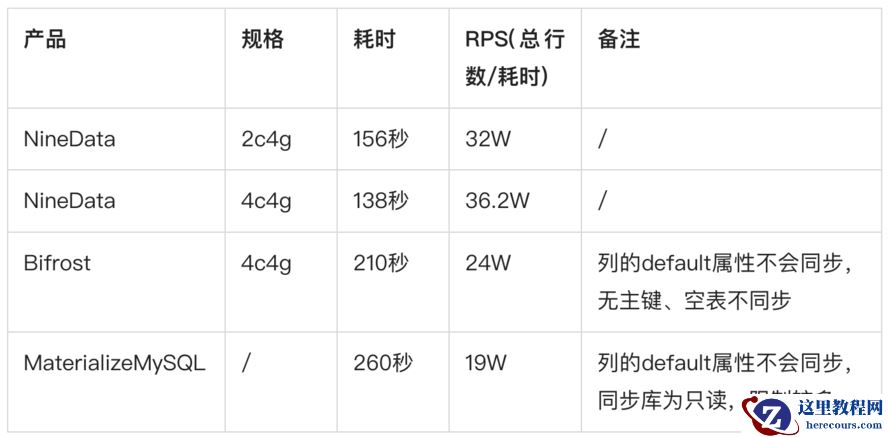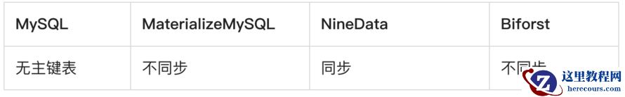 NineData对记录做了特殊的标记处理,所以很好的支持了无主键表的数据同步。而MaterializeMySQL、Biforst均不支持。