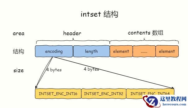 关于散列表结构我会在专门的章节介绍,先看 intset 结构,结构体定义在源码 intset.h中。