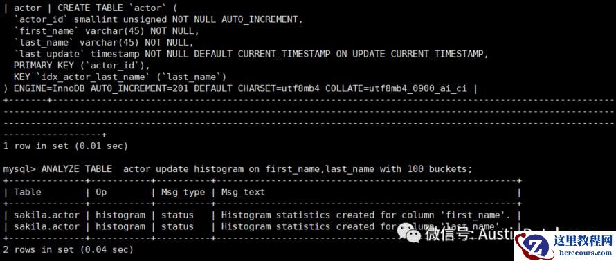 ANALYZE TABLE actor update histogram on first_name,last_name with 100 buckets;