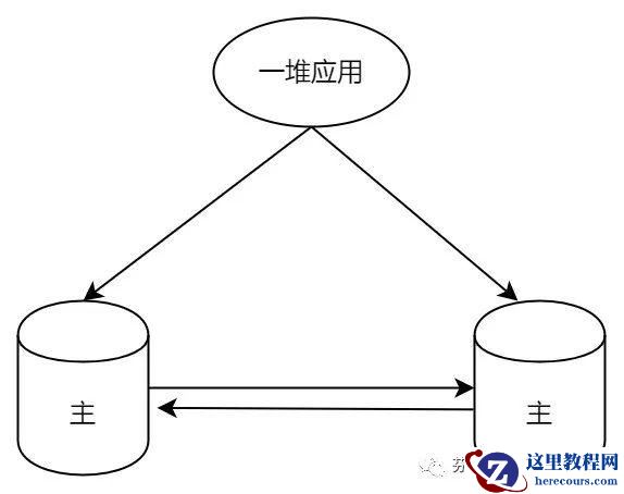 左边的 master 只写某些表,右边的 master 只写另外的那些表。当然了这也说明了左边的某些表和右边的那些表是完全没有业务关联的,不需要做 join 操作的,那为何不拆为库呢?这样对应用程序的设置会更友善。