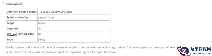 可以看到该参数非动态配置,在从库注册时上报给主库,所以主库上执行 show slave hosts; 看到的是 IP 是从这里来的,且无法在线修改。