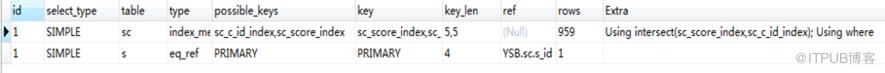 这里用到了intersect并集操作,即两个索引同时检索的结果再求并集,再看字段score和c_id的区分度。