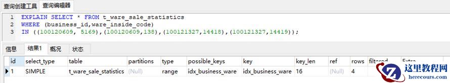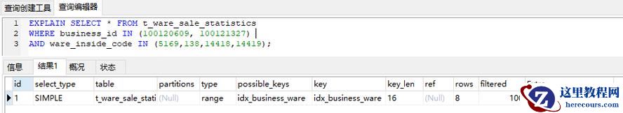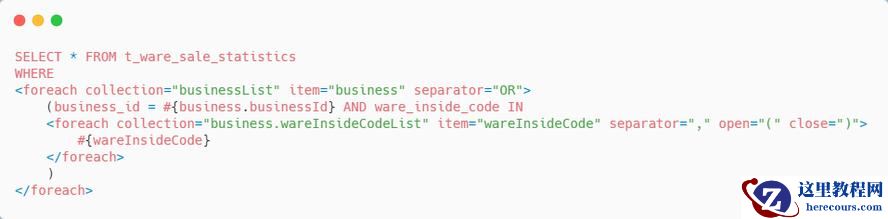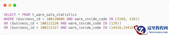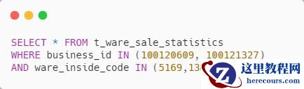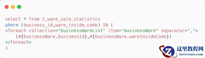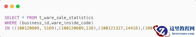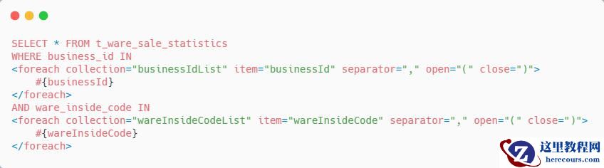 同样是利用 Mybatis 的 动态 SQL ,将 business_id 列表拼在一起、 ware_inside_code 拼在一起,类似如下