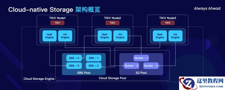 这是 CSE 整体的架构,核心就一点,它是一个成本考虑下,多租户背景下的新一代云上 OLTP 存储引擎。本质来说即使在之前的存储层,TiKV 这一层也开始做了存算分离,这就带来一个好处,比如有一些用户的数据是冷数据,因为我们在云上发现大多数的用户的业务和数据满足 82 法则,20%的热数据,80%可能是冷数据,但这些冷数据你在它不用的时候就可以按照流量的需求,直接 compact 到 AWS S3 这样云上更便宜的存储上面。AWS S3 存储的价格每 TB 每个月大概 20 美金,喝两杯咖啡就有一个月一个 TB 的存储空间了,这还是没有任何优惠的情况,实际上还可以更便宜。