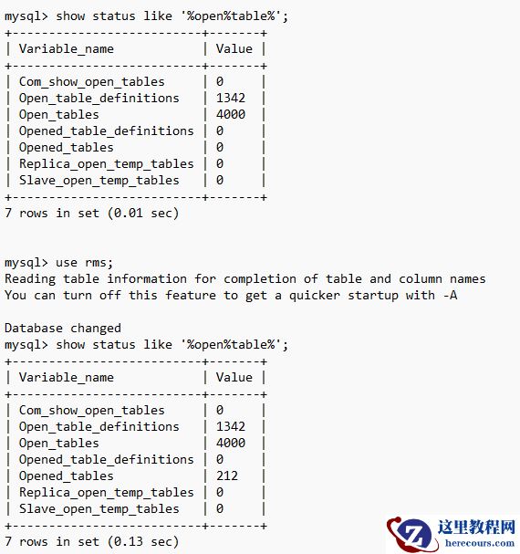 一般来说,连接数据库以后use database以后会打开表(结构)缓存, Opened_tables(当前会话)新会话是0.use某个database以后,这个值会增加,目前是从0变到212