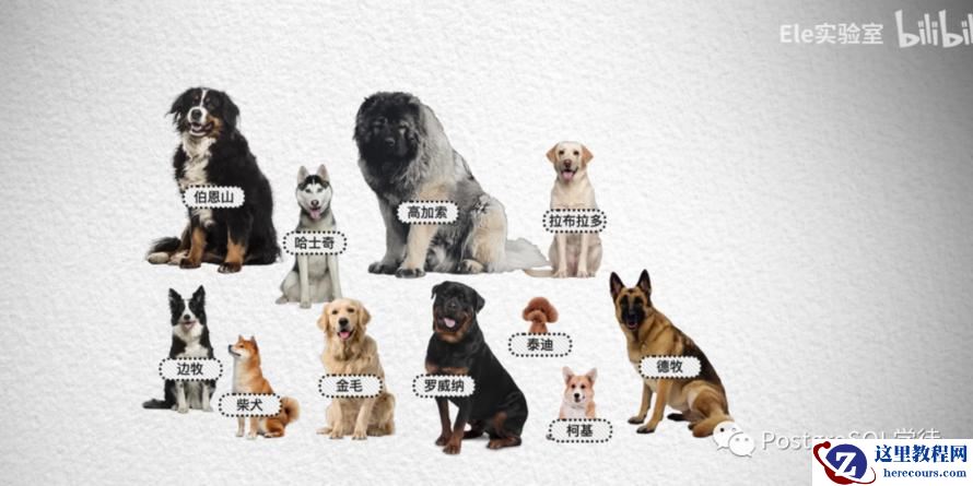然而单靠一个体型大小的特征并不够,像照片中哈士奇、金毛和拉布拉多的体型就非常接近,我们无法区分。