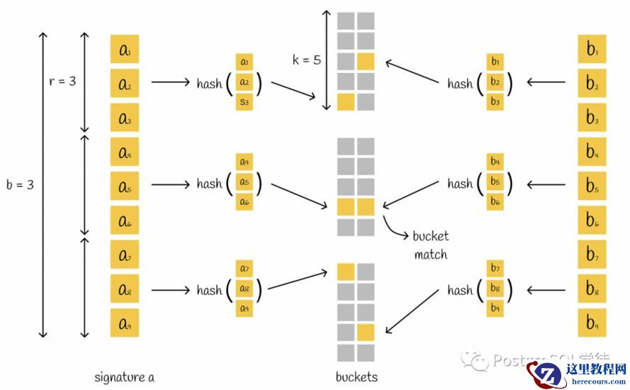 除了向量聚类之外,还有一种——位置敏感哈希 (Locality-Sensitive Hashing),这种哈希方式反其道而行之,力求增大"碰撞"的概率,这样的话哈希值一样的向量就被分到了一个 bucket 中,越相似的向量发生"碰撞"的概率就越高,通过这种方式找到相似的向量。