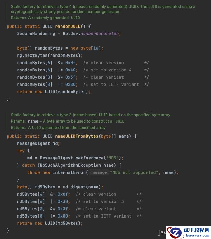 Java中的java.util.UUID生成的UUID是V3和V4两种: