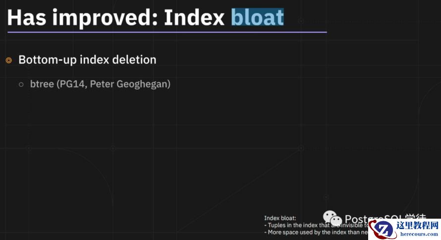 14 版本引入的 bottom-up index deletion,在索引页即将分裂之前删除指向死元组的索引条目,避免分裂