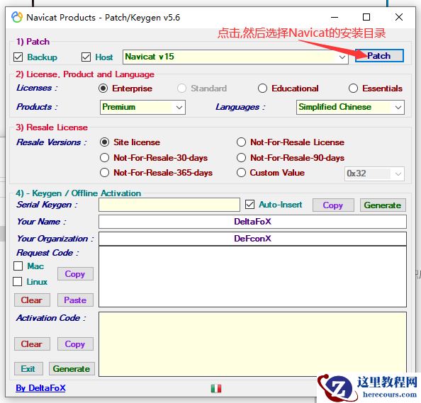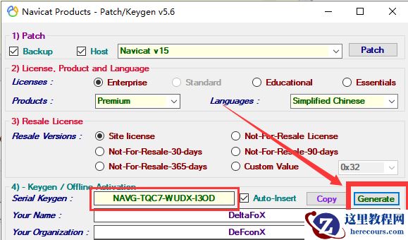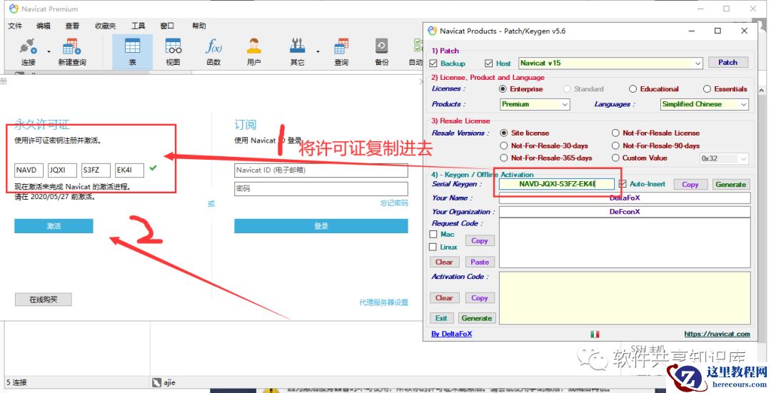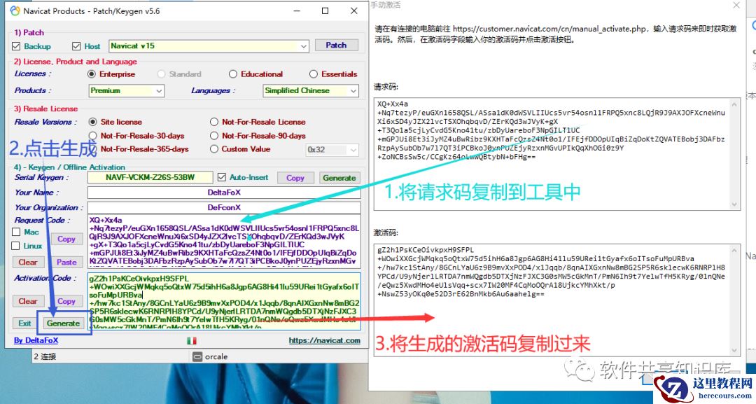 4.点击Generate按钮就会生成一个许可证密钥,将许可证密钥复制后就打开Navicat Premium 15
