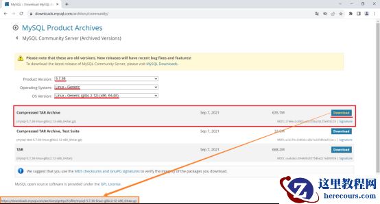 wget https://downloads.mysql.com/archives/get/p/23/file/mysql-5.7.36-linux-glibc2.12-x86_64.tar.gz