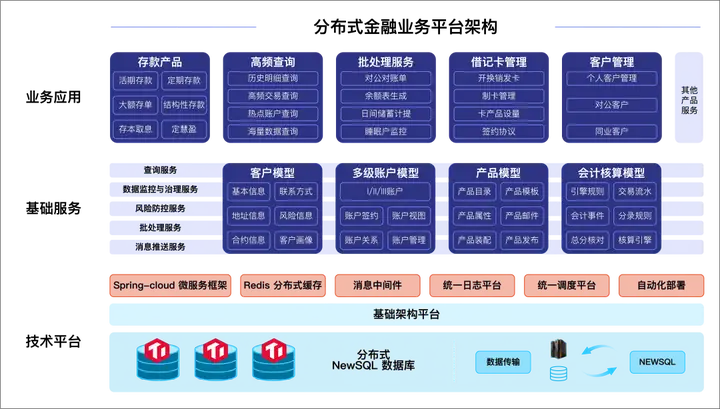 分布式金融业务平台 是北京银行基于 TiDB 搭建的全新的金融业务平台,通过 TiDB 多用户共享资源机制,构建了查询服务、数据监控、风险防控等多项微服务架构,为客户提供存款、查询等多项服务。从 2018 年起,分布式金融业务平台陆续对接网联支付清算平台、银联无卡快捷支付平台、金融服务互联平台、网贷业务平台等多个核心金融业务场景。平台充分利用 TiDB 的 HTAP 混合业务处理能力,实现联机业务和在线分析业务的隔离,支持的数据表超过 80 亿+ 条数据,支撑超过 1 亿客户的互联网金融业务,同时满足联机业务和实时分析应用的不同场景需求。