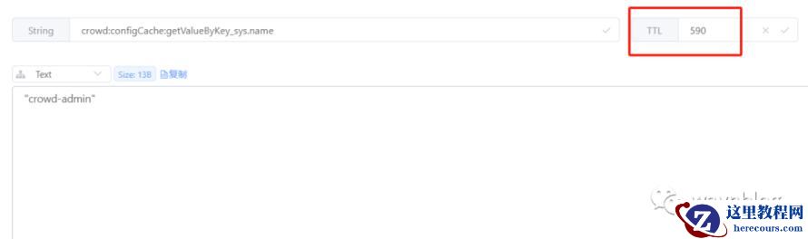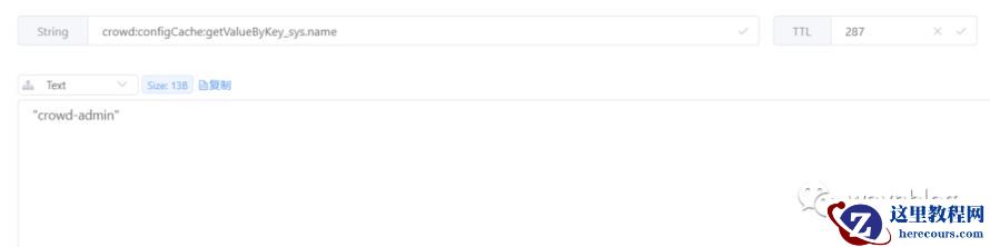 serializeKeysWith():设置 Redis 的 key 的序列化规则。erializeValuesWith():设置 Redis 的 value 的序列化规则。computePrefixWith():计算 Redis 的 key 前缀。entryTtl():全局设置 @Cacheable 注解缓存的有效期。那么使用如上配置生成的 Redis 缓存 key 名称是什么样得嘞?这里用开源项目 crowd-admin 的 ConfigServiceImpl 类下 getValueByKey(String key) 方法举例,