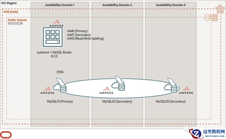 MySQL InnoDB 集群在 3 台机器上运行,一台机器用于 MySQL 路由器和 Sysbench。