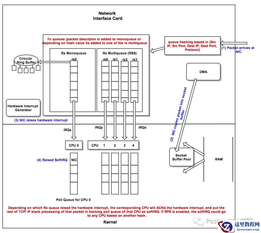 这里要提一下网卡多队列 RSS(Receive Side Scaling)是网卡的硬件特性(需要硬件支持),实现了多队列,多队列是RX/TX多个通路,分别负责各种的中断,可以将不同的流分发到不同的CPU上;
