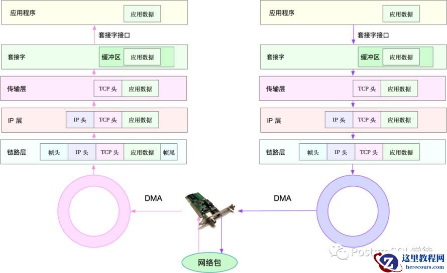 “在Linux内核实现中,链路层协议靠网卡驱动来实现,内核协议栈来实现网络层和传输层。内核对更上层的应用层提供socket接口来供用户进程访问。