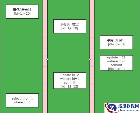 事务中如果有更新语句的话,更新语句都是以当前读的方式读取到版本记录中最新数据,然后再进行更新操作,因此上图中的查询结果为i=12。