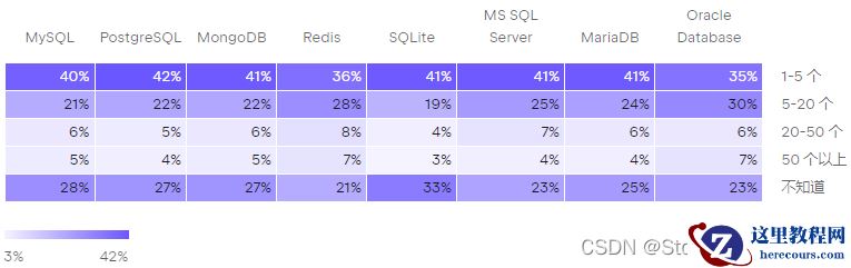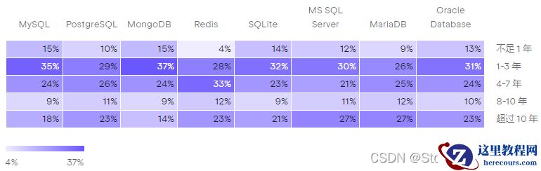 50%以上的开发者是具有4年以上相关数据库经验的,这也可以凸显出这份调研报告的质量。