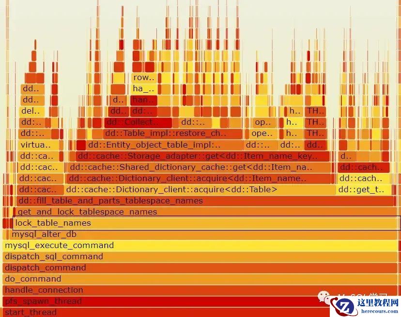 耗用CPU最多的上层调用为mysql_alter_db。问题很明显了,就是dump文件里面有大量的alter database 语句。这种语句耗用了大量的CPU,导致导入时间很长。