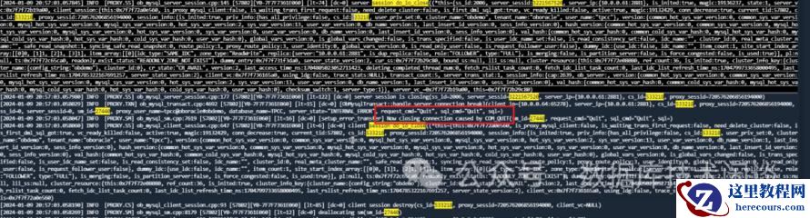 但是,如果是连接正常退出,那看到的就是后端连接退出日志先出现,前端连接退出日志后出现。并且还能看到handle_server_connection_break 和 COM_QUIT 事件。