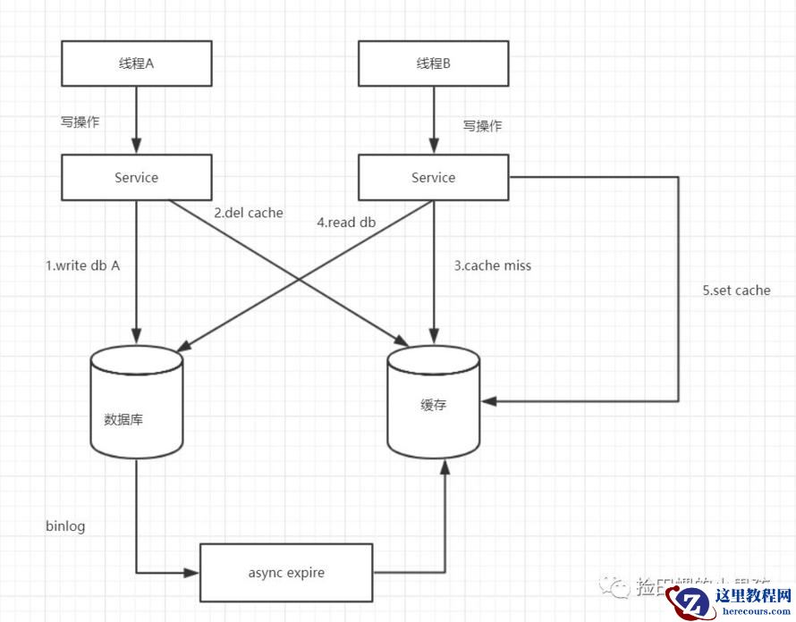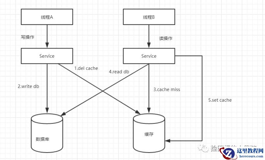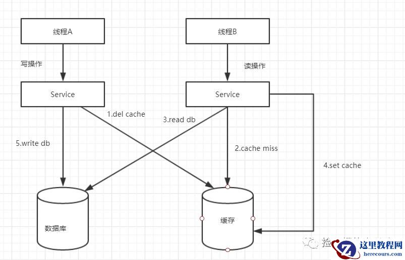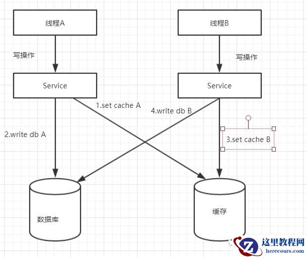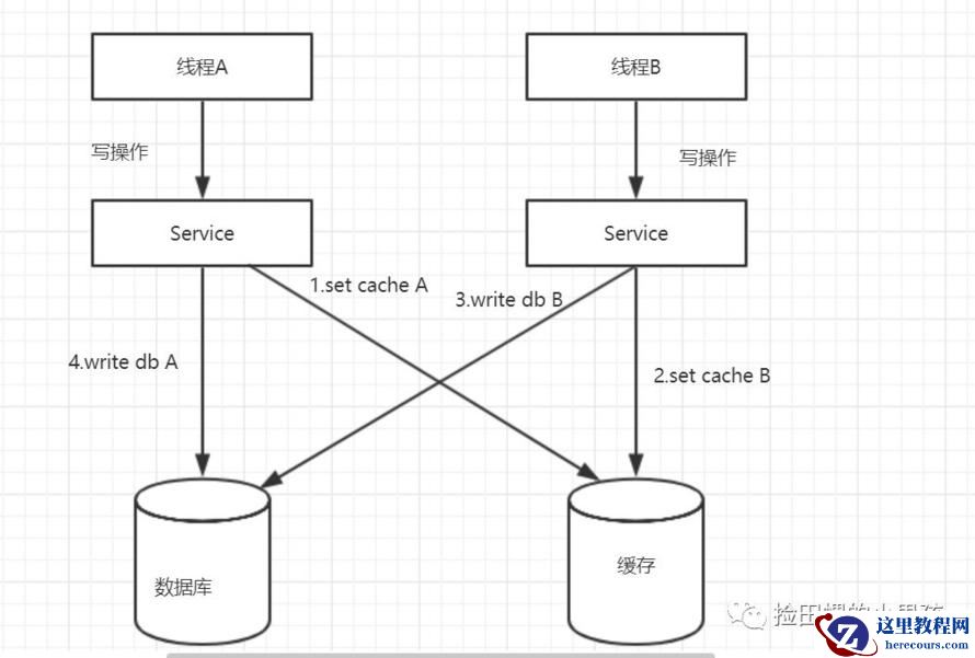 一写(线程A)一读(线程B)操作,先操作数据库,再操作缓存。