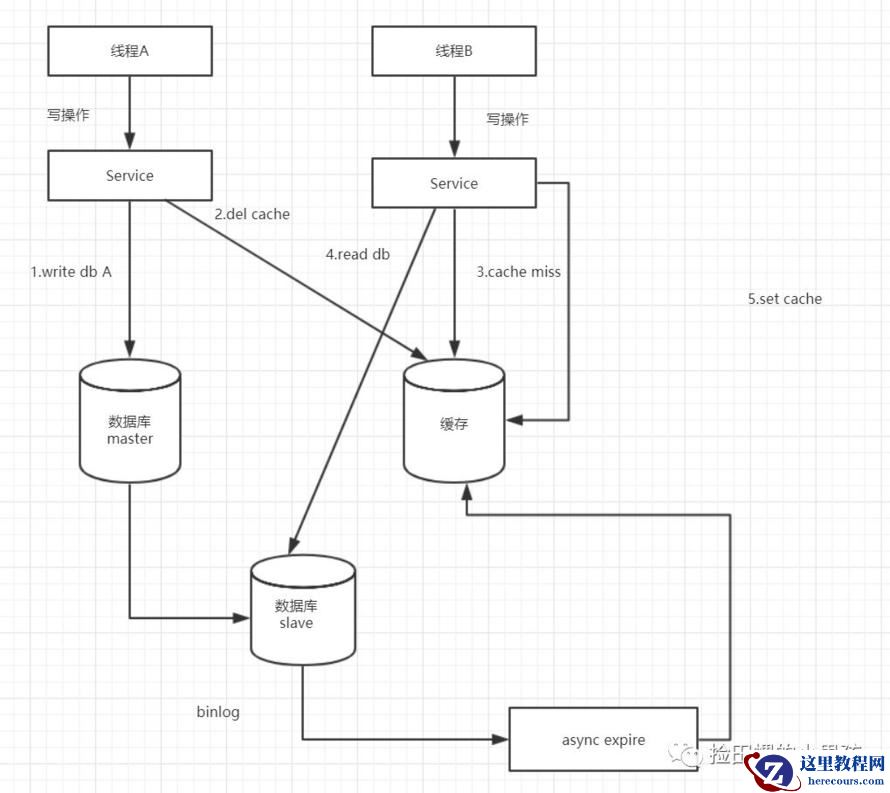 1)线程A发起一个写操作,第一步write DB