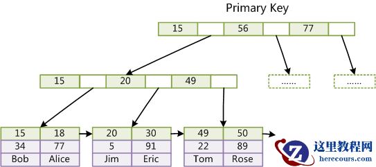M 等于磁盘块的大小除以数据项大小,由于磁盘块大小一般是固定的,所以减小数据项大小才能使得 M 更大从而让树更矮胖。这也是为什么 B+ 树把真实数据放在叶子节点而不是非叶子节点的原因。 如果真实数据放在非叶子结点,磁盘块存储的数据项会大幅度减少,树就会增高相应查询数据时的 IO 次数就会变多。 3、索引实现