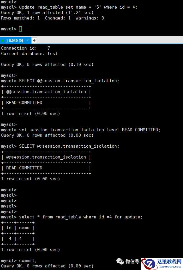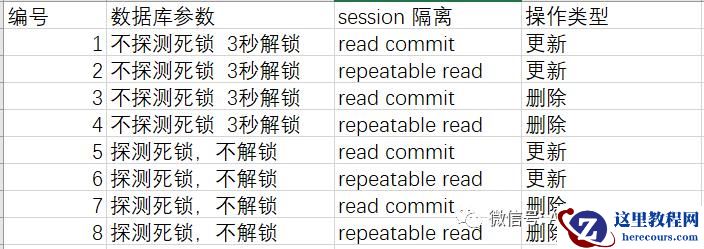 | 5 | 探测死锁,不解锁 | read commit | 更新 |