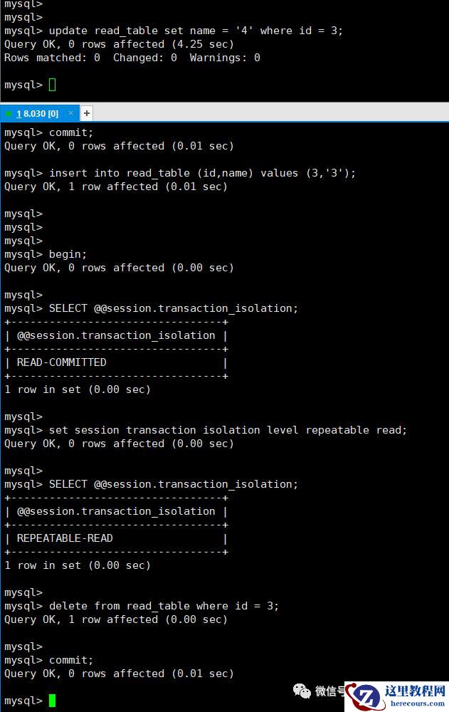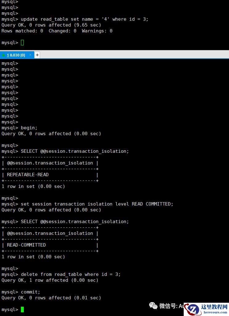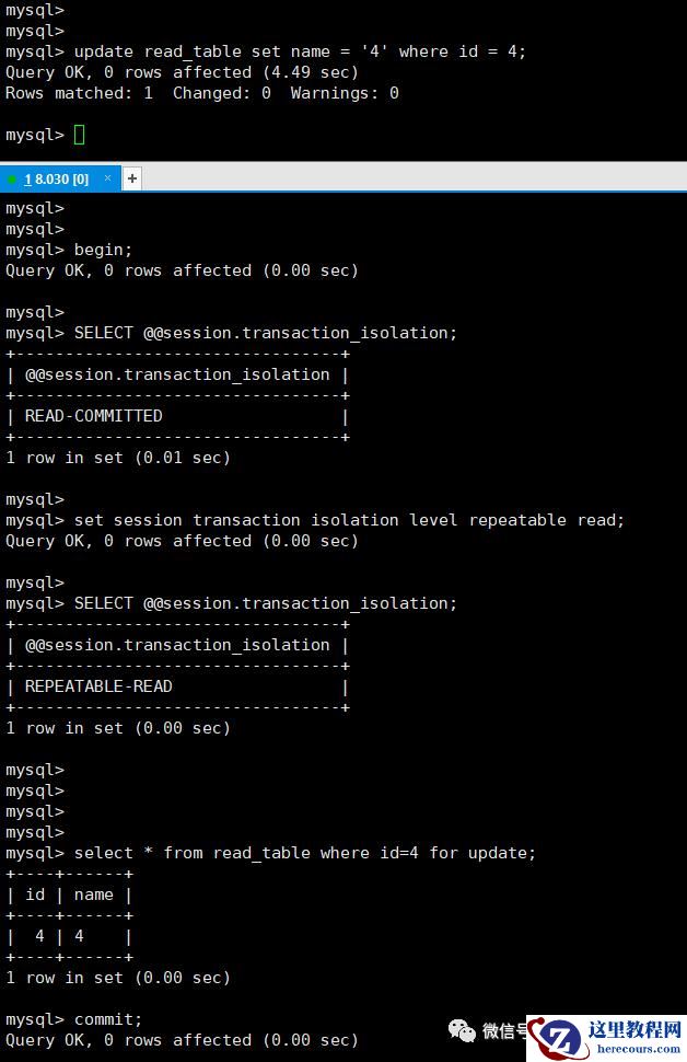 或者你使用了自动检测死锁,同时将innodb_lock_wait_timeout = 更大的数值,那么你得到的结果就与隔离级别有关了,如果是RR 的情况,你将会获得 update 0 的结果,如果是RC 数据还在的情况下,你会获得update 对应结果的结果,如果相关的行不在的情况下,获得结果也是UPDATE 0 的结果。