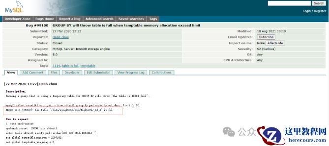 1> 升级MySQL版本,该BUG Fixed in 8.0.27;