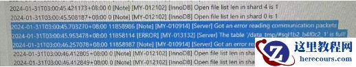 问题简述:2024/1/31 凌晨3点 应用批量报 The table ’/data_tmp/mysql_xx….’ is full 。