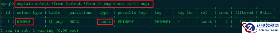 通过explain+sql语句可以知道如下内容: