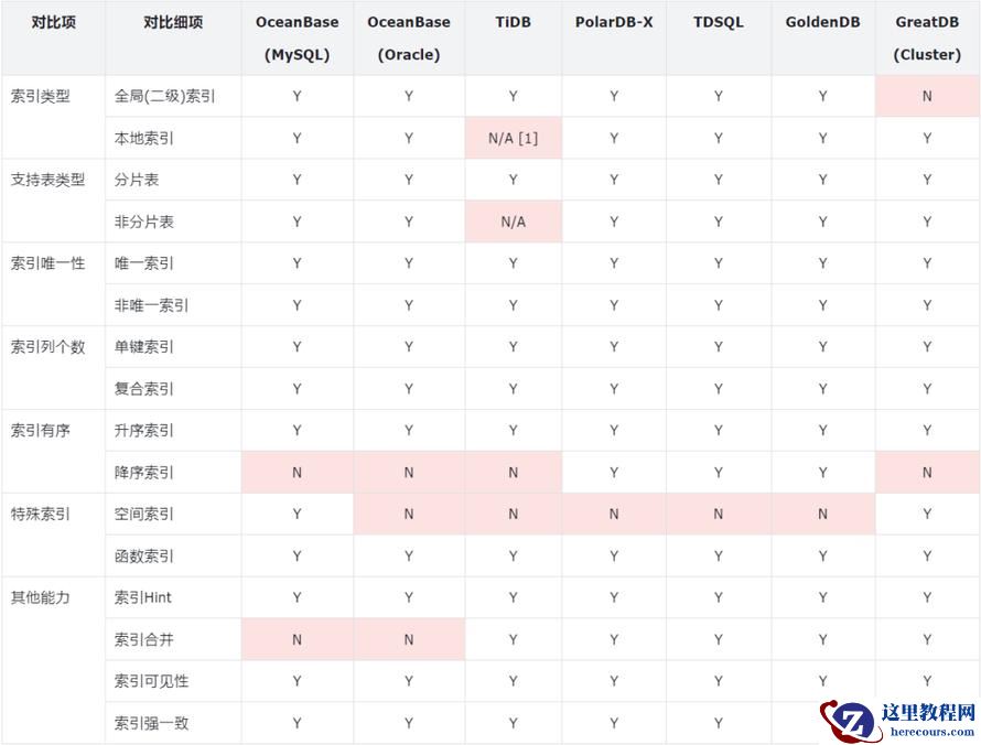 分布式数据库索引能力大调研