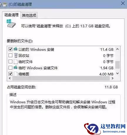 另外,如果你的电脑系统是从Win7/8升级到的最新Win10,而又出现C盘空间越来越小的时候,建议删除Windows.old文件,可以释放十几GB的存储空间。