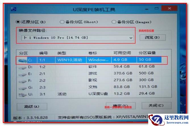 4、最后一步,装系统。打开桌面上的PE系统工具,这个软件会自动识别U盘里的系统,只需要把系统装在C盘里就可以了。全程自动完成,完成后等待重启就好了。