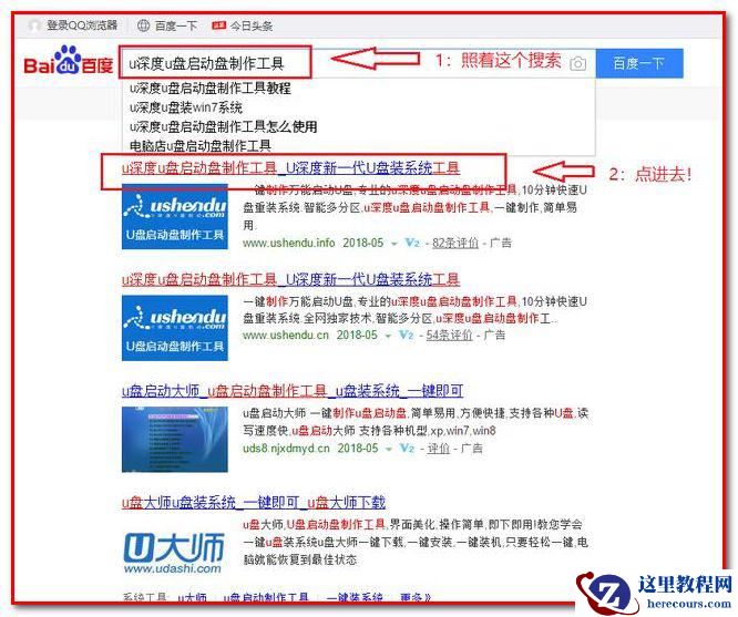 1、打开百度,搜索:U深度U盘启动盘制作工具