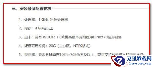 3、安装系统的电脑硬件最低配置要求